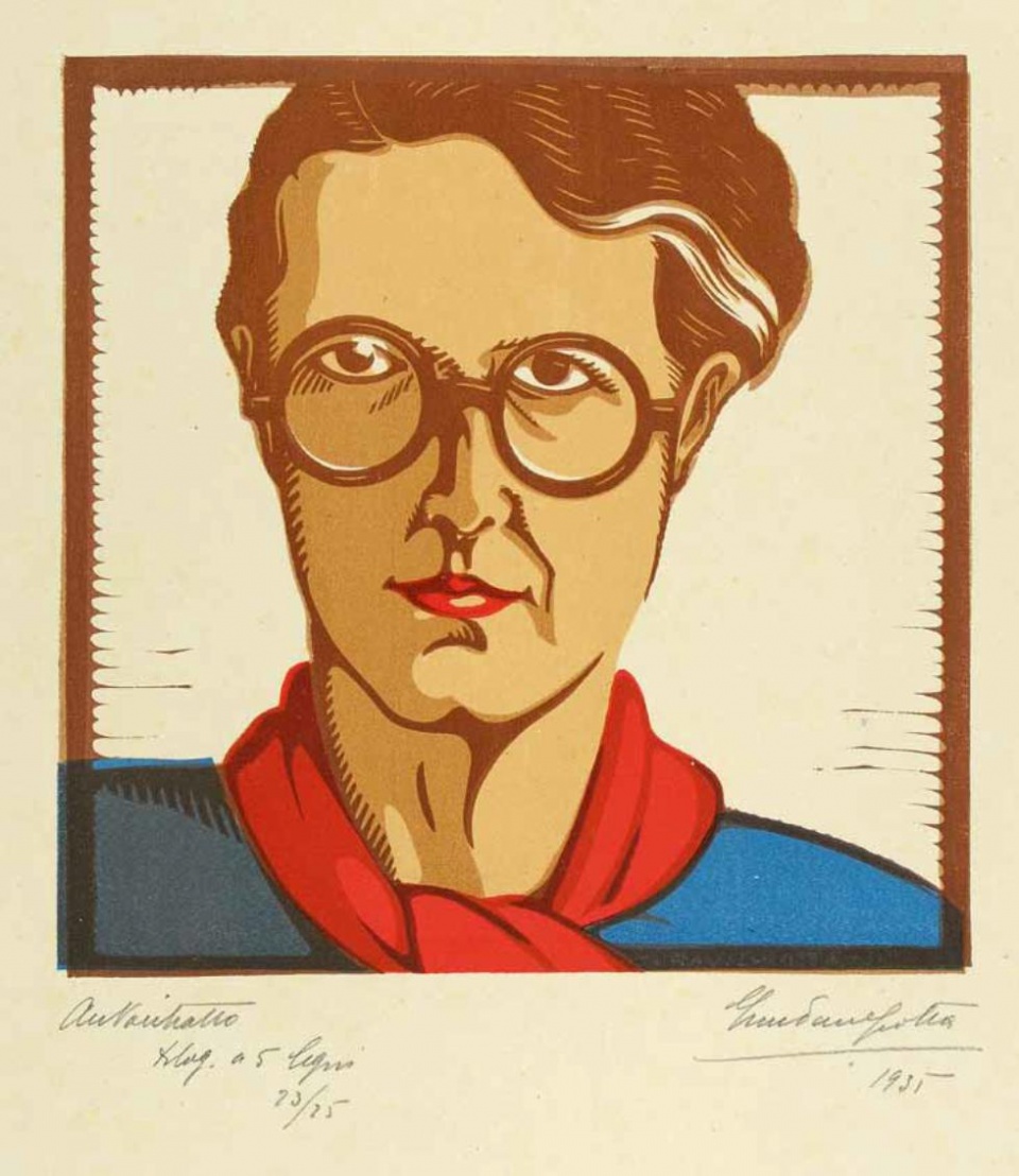 Irma Pavone Grotta (Livorno, 1900-1972), allieva di Adolfo Tommasi e Raoul Dal Molin Ferenzona, impegnata nelle arti decorative e nel processo di rinascita della xilogafia in Italia, partecipò alle pagine de L’Eroica – vedi la copertina del n.152-154, maggio-giugno 1931 – e si distinse per l’impegno nell’ambito della battaglia per l’emancipazione femminile. Stimatissima da Carlo Servolini, e sostenuta dal figlio Luigi, fu protagonista dei volumi dedicati alla xilografia e de “Gli adornatori del libro in Italia” curati da Cesare Ratta.