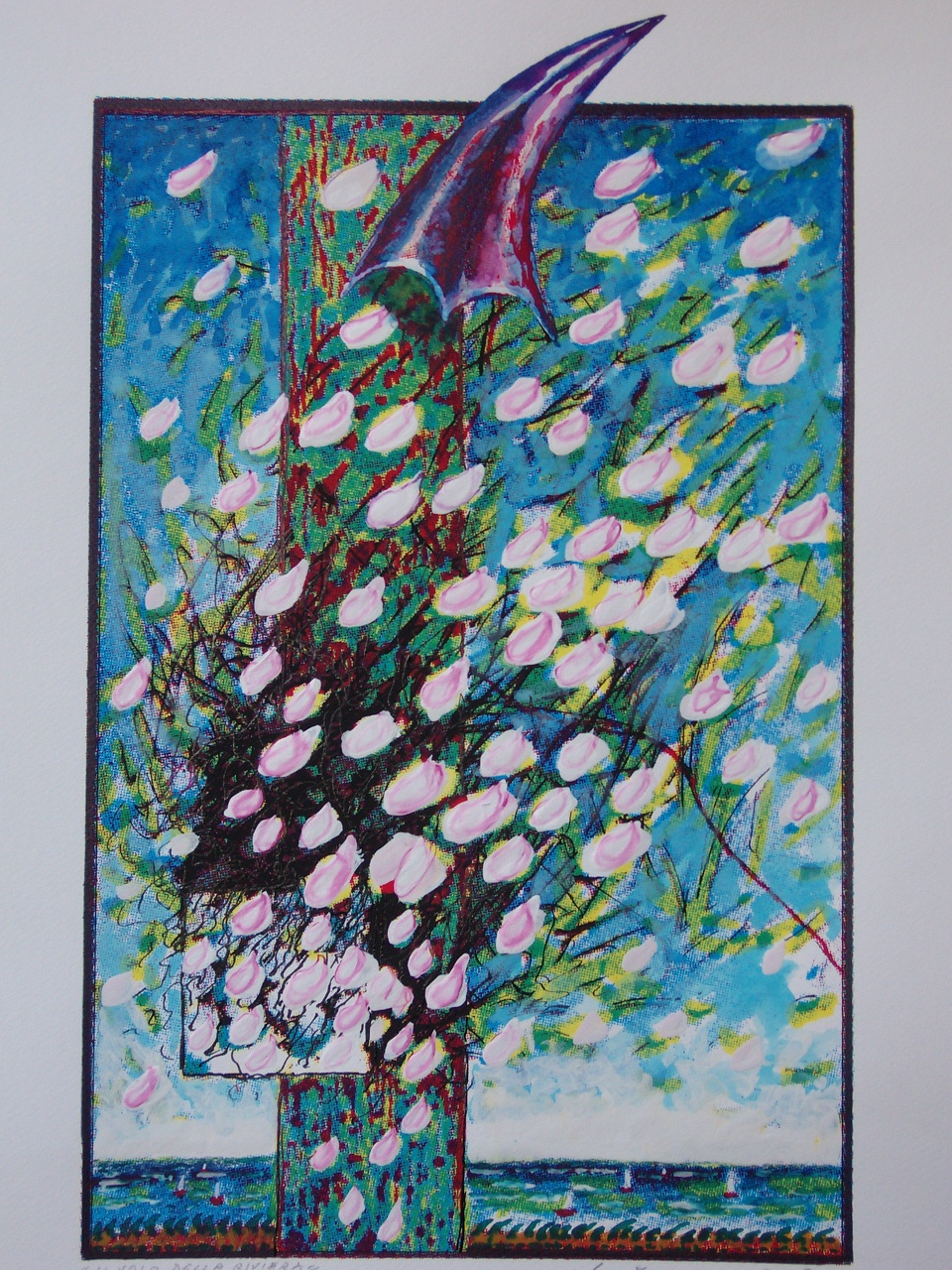 Fra questi interpreti del segno, è stato invitato anche il noto artista marchigiano Carlo Iacomucci, da segnalare il recente invito alla mostra “Art is Our Last Hope” presso il Phoenix Art Museum, Phoenix Arizona USA. La sua opera titolata “Un volo per vitafiorita” (immagine sotto il titolo) con i caratteristici e personali simboli, come i sette colori della luce, gli storni di gocce, i semi della vita, i due aquiloni che smaniano di uscire dallo spazio geometrico in cerca di nuovi approdi, assieme ad altre forme sfuggenti e segni vaganti, ben interpreta l’inclinazione alla libertà impressionista ed espressionista vissuta dall’artista messicana, sia come donna, sia a livello psicologico-visivo. Uno spazio, insomma, non soggetto a confini o unioni convenzionali. Qui, arte visiva e natura tra realtà e fantasia esprimono quell’oniricità di pensiero e volo di spirito, con una particolare creatività che riporta ad alcune adiacenze metafisiche della Kahlo.