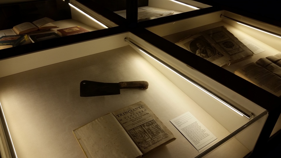 Grazie alla collaborazione con la Biblioteca Internazionale La Vigna di Vicenza – preziosa custode di uno straordinario e poco noto patrimonio libraio legato al tema del cibo, del vino e dei campi che ha in allestimento la mostra sulla etichette del Chianti Classico – sono esposti una sessantina di testi che rappresentano lo sviluppo dell’arte della cucina italiana lungo i secoli, dai capolavori della cucina rinascimentale ai ricettari Liebig, passando per Pellegrino Artusi, fino a Giuseppe Maffioli.