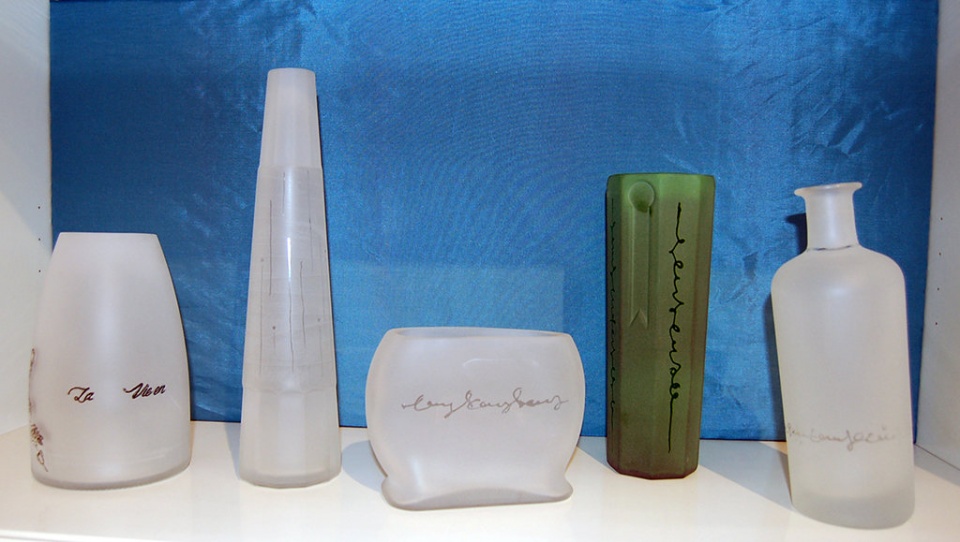 Un ecovaso così si autodescrive: “Sono un ecovaso; prima ero una bottiglia di … (nome del possessore) e poi, dopo il taglio, la levigatura e la sabbiatura ho saputo rinnovarmi. Sono unico, non solo perché lavorato completamente a mano ma anche perché la decorazione, mia e dei miei fratelli, è stata concepita individualmente, pezzo per pezzo.”