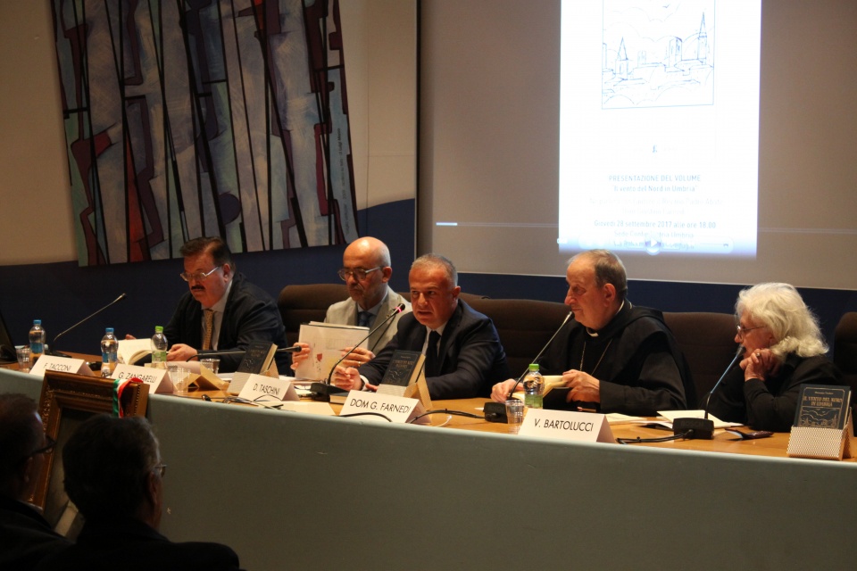 Un percorso che è stato studiato e raccontato da Domenico Taschini, funzionario di Confindustria Umbria, nel suo volume “Il vento del nord in Umbria” presentato giovedì 28 settembre nella sede di Confindustria Umbria a Perugia insieme all’Abate Dom Giustino Farnedi.