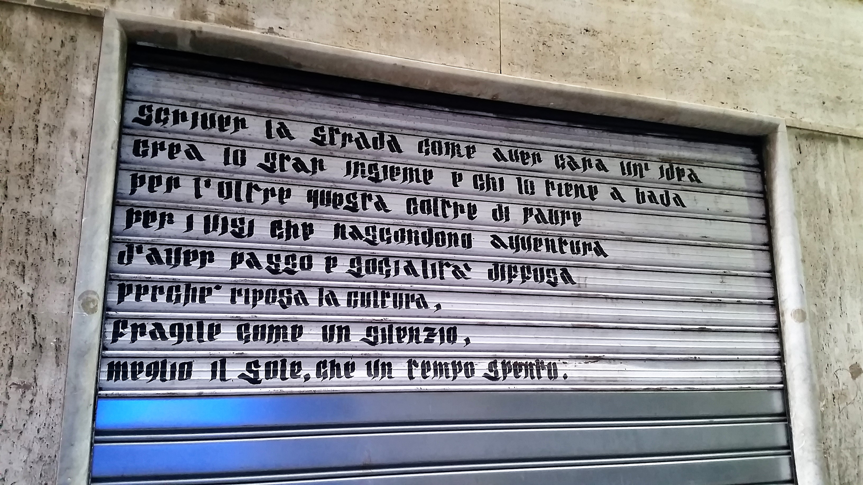 E quest’altro potrebbe essere considerato come il Manifesto degli Writers (tutto scritto accuratamente e con eleganza su una saracinesca):
