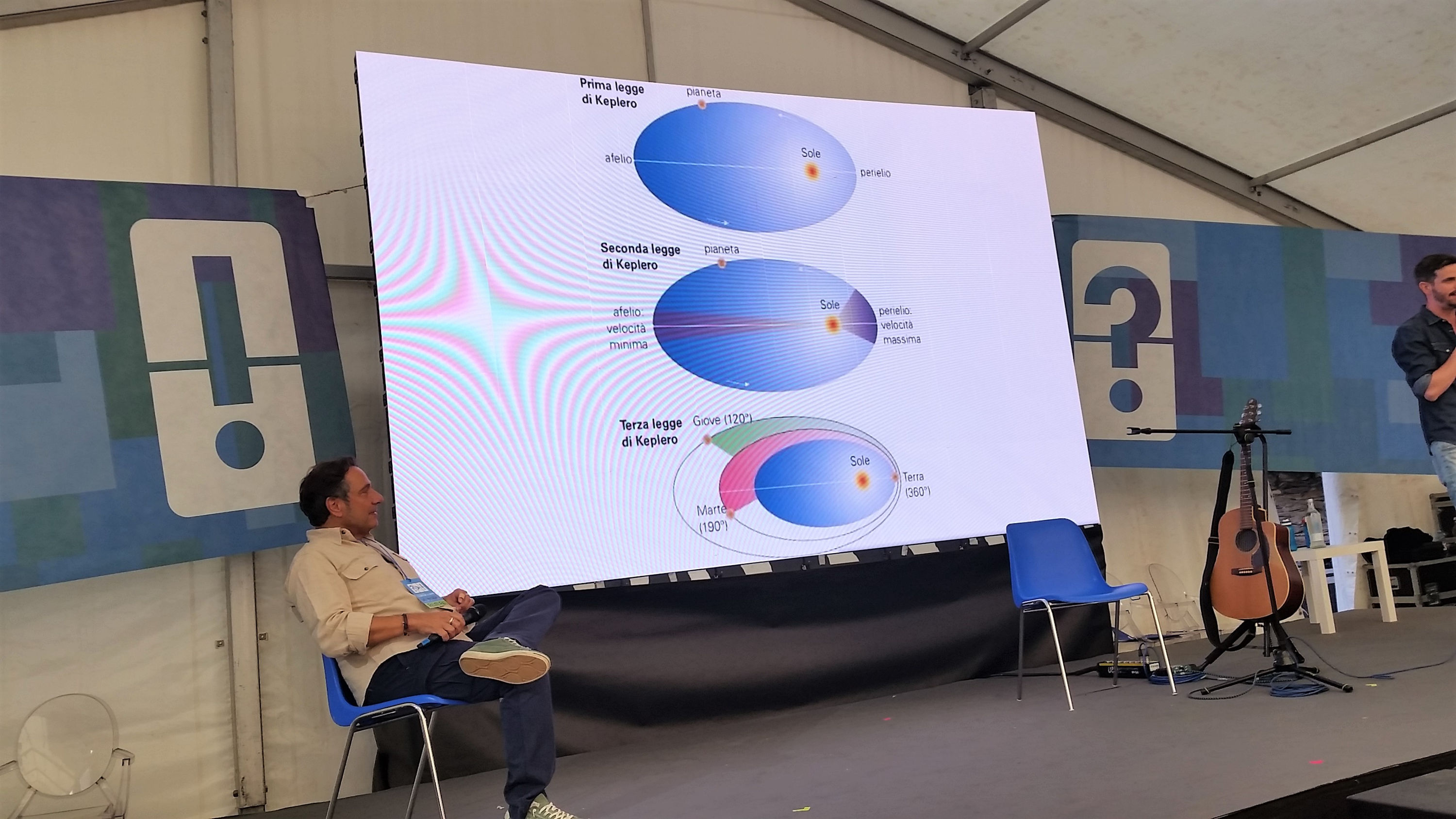 Lorenzo Baglioni è un giovane ingegnere appassionato di musica, che ha insegnato matematica nelle scuole e che ora si dedica alla divulgazione scientifica con la chitarra e mediante musica rap e punk. Sì, proprio rap e punk. In diretta e con filmati che qui hanno ricevuto delle standing ovation, ha spiegato, ad esempio, le leggi di Keplero ; ha spiegato anche – a beneficio di Mario Tozzi, del sindaco e, compreso chi scrive, tutti geologi – come la geologia sia una ‘scienza seria’ che deve avere buone basi di matematica, chimica e fisica (lo ha fatto con la spiegazione dei silicati quei minerali che per la loro complessità hanno fatto venire mal di testa a più d’uno studente di geologia). Tutte video utili che segnaliamo volentieri ai docenti.
