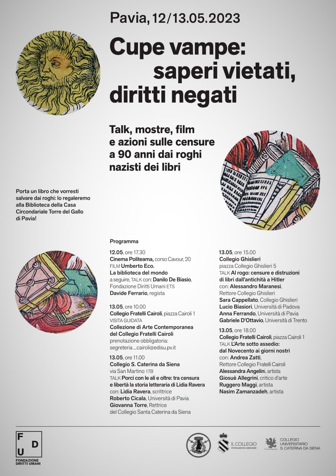 Cupe vampe: saperi vietati, diritti negati. Racconti, mostre, film e azioni sulle censure a 90 anni dai roghi nazisti dei libri Pavia.