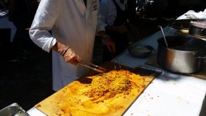 Entriano a Pieve Torina, nella valle del Chienti, alle pendici dei Monti Sibillini: è il primo centro in cui i segni del terremoto del 2016 sono più che tangibili. Più che le macerie che costeggiano la provinciale, colpiscono le case che restano in piedi, sigillate e messe in sicurezza, i balconi con vasi di fiori ormai appassiti, qualche panno disteso e logorato dal lungo inverno seguito al sisma. Un paese quasi fantasma. È sabato ma le strade sono deserte, nonostante oggi qui, nel campo sportivo, centinaia di persone si sono date appuntamento giungendo non solo dalle Marche, per vivere in diretta il progetto che a settembre vedrà completata la nuova scuola. Al termine del convegno “Connettere, Interagire, Costruire” organizzato da Box Marche e Paradisi, le due aziende che hanno lanciato l’iniziativa, ci si ritrova nel parco che affianca le fondamenta ormai terminate della scuola, ospiti di un picnic tutto realizzato con i prodotti locali.