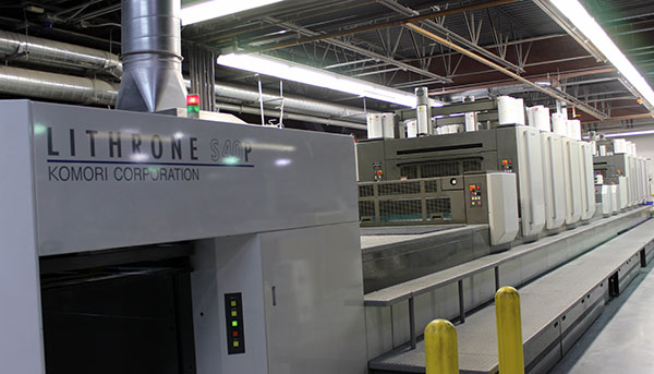 Una Komori Lithrone 8 colori con voltura, una delle macchine offset che va per la maggiore
