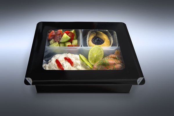 El proveedor de empaquetado de SAS trabajó en colaboración con Elanders, empresa que desarrolló anteriormente un empaquetado convertible en abono orgánico y de peso considerablemente más ligero para Malmö Aviation. SAS encargó crear un empaquetado ligero, de uso fácil, que presentara los alimentos con elegancia.
