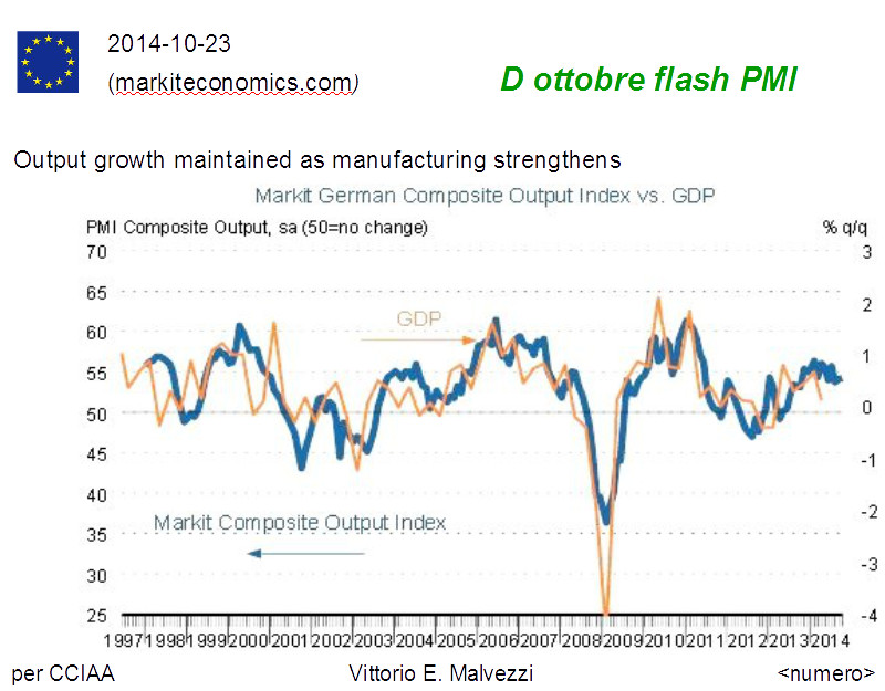Germania – le previsioni parlano di una crescita di prodotto che regge e di una produzione destinata a rafforzarsi. La differenza tra gli indici che abbiamo visto prima e il PMI è che il pessimismo dei primi era dovuto allo sguardo rivolto al passato, mentre il PMI guarda al futuro.