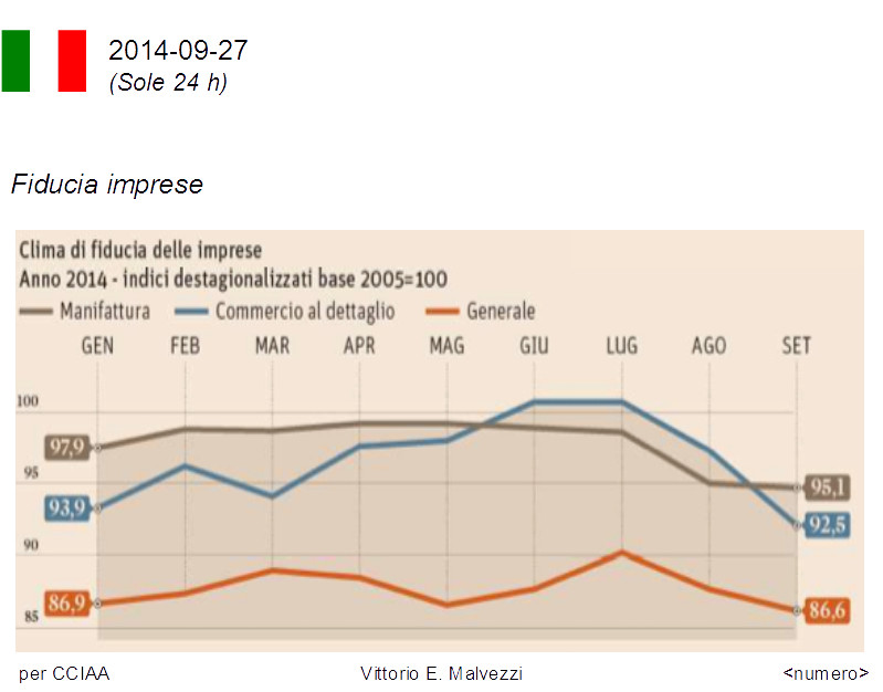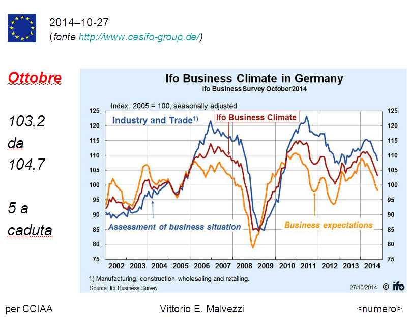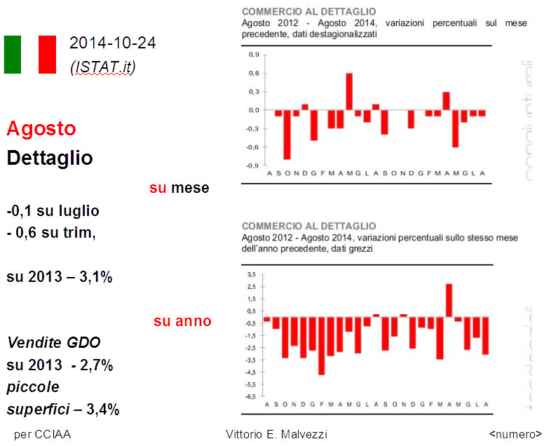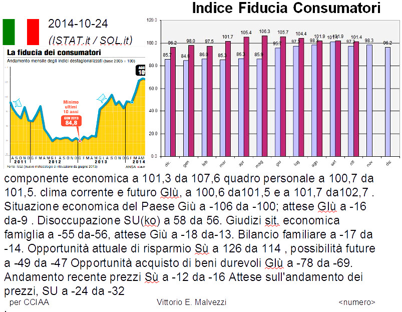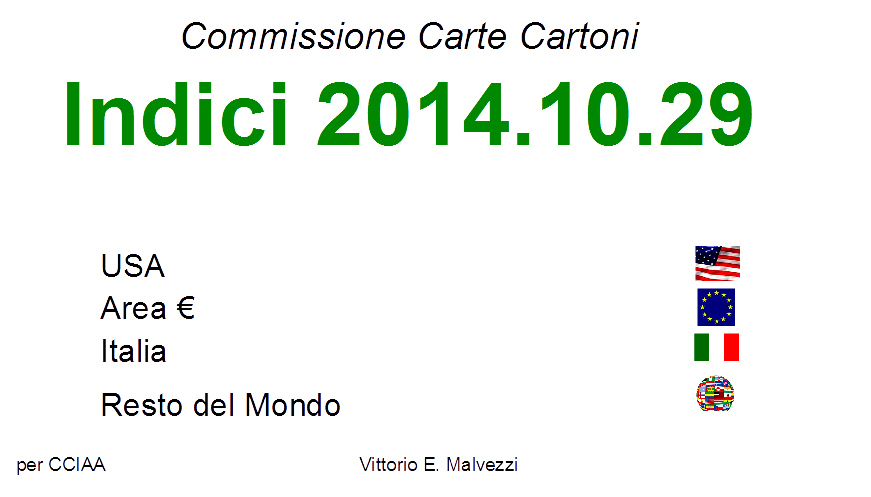 I grafici che seguono vengono dall’ultima riunione mensile di fine ottobre 2014 e pur avendo l’autorevolezza di fonti qualificate, ai Commissari esperti viene lasciata ogni responsabilità. Le fonti camerali seguono vie ufficiali, spesso a pagamento, che trovi online.