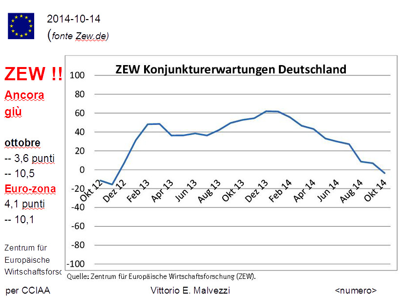 Atterriamo in Germania – sarà anche “über Alles” ma c’è fiacca pure qui – l’Indice che vediamo, lo Zew, è un indice che rappresenta l’andamento dell’economia in Germania ed è molto seguito nella grüne Deutschland.