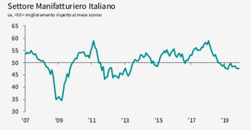 Tra le cause principali della decelerazione ci sono il rallentamento del commercio mondiale e il deterioramento della fiducia delle imprese: nel periodo gennaio-novembre 2019 i giudizi sull’andamento economico del Paese sono peggiorati sensibilmente sia nei servizi, sia nella manifattura. Una crescita più contenuta (+1,7%) è prevista nel 2020, determinata da un lieve rallentamento di tutte le tipologie di investimento che risentirebbero della lenta crescita del commercio mondiale (+2,3% nel 2020), ma che beneficeranno della reintroduzione degli incentivi di iper e super ammortamento e del perdurare di una politica monetaria espansiva da parte della Bce.