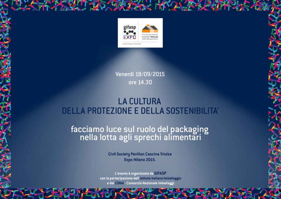 Il convegno è organizzato da Gifasp con la partecipazione dell’Istituto Italiano Imballaggio e del CONAI e si terrà al Civil Society Pavilion Cascina Triulza di Expo Milano 2015 venerdì 18 alle ore 14.30. Numerosi gli opinion leader che dialogheranno sulla tematica “La cultura della protezione e della sostenibilità – Facciamo luce sul ruolo del packaging nella lotta agli sprechi alimentari” . Durante i lavori, ci sarà una breve performance teatrale che approfondirà le tematiche sfatando molte percezioni erronee. Interverranno Emilio Albertini, presidente Gifasp; Piero Capodieci, membro CdA Conai e Marco Sachet, direttore dell’Istituto Italiano Imballaggio, e Antonio Feola, mentre il coordinamento sarà a cura di Fabrizio Bellavista, fondatore di Expopportunity.