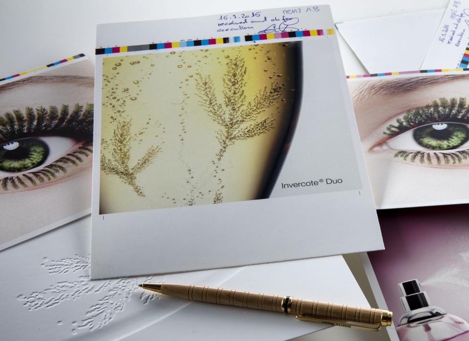 «Invercote, per la sua stabilità dimensionale e la sua elasticità, è la scelta ideale per coloro che intendono usare i rilievi per dare tridimensionalità ai loro pieghevoli o ad altro materiale stampato, spiega Guglielmi, perché sono in grado di rafforzare la sensazione tattile, catturano una maggiore attenzione e, non ultimo, consolidano l’idea di qualità.»