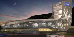 Avviati i lavori per l’ambizioso progetto di ampliamento del headquarter Durst nella zona industriale di Bressanone. La cerimonia di posa della prima pietra del 26 maggio scorso. Il nuovo edificio ospiterà l’esclusivo Innoviation Centre, un moderno showroom e sarà sede della direzione centrale del Gruppo. Una struttura all’avanguardia, destinata a essere emblema dell’internazionalità di Durst. A connotare in maniera esclusiva la facciata del nuovo edificio, che sarà collegato direttamente alla sede storica, un design a pixel dalla forma organica, realizzato con elementi prefabbricati in calcestruzzo leggero. Questa speciale costruzione con motivo traforato, che richiama immediatamente il tema della fotografia e della stampa digitale, conferirà all’intero edificio una forte impronta identitaria. La perfetta integrazione tra la nuova struttura e quella già esistente permetterà lo svolgimento dei lavori di costruzione senza interrompere la consueta attività aziendale.
