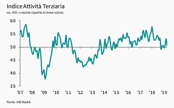 A livello di indici aprile registra il valore 50.4, indicando un incremento marginale dell’attività terziaria, ma un calo rispetto a 53.1 di marzo.