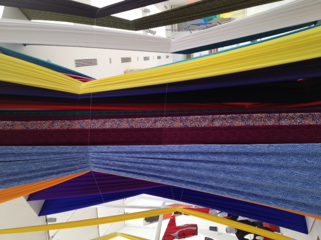 È così che l’allestimento e la grafica accompagnano l’esposizione dei tessuti e delle esperienze più avanzate nel campo tessile.