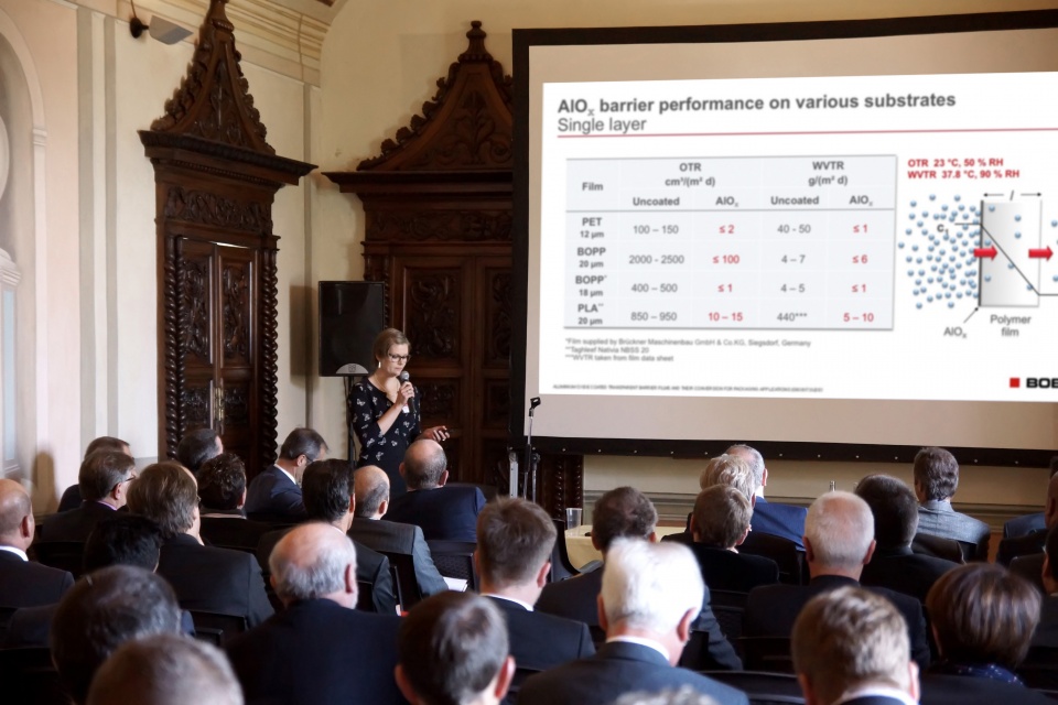 Carolin Struller di Bobst Manchester ha presentato le approfondite ricerche effettuate dall’azienda sulla spalmatura trasparente di ossido di alluminio (processo AlOx), dal modo in cui viene prodotto, ai risultati che si ottengono sui diversi tipi di film plastici, alle capacità di mantenere le proprietà barriera dopo la stampa e la trasformazione del film. Bobst Manchester continua ad effettuare ricerche e test approfonditi sul processo e a studiare soluzioni che permettano in futuro di aumentarne la stampabilità mantenendo nel contempo inalterato l’effetto barriera.