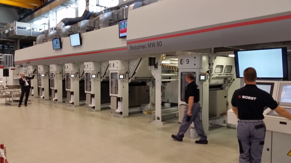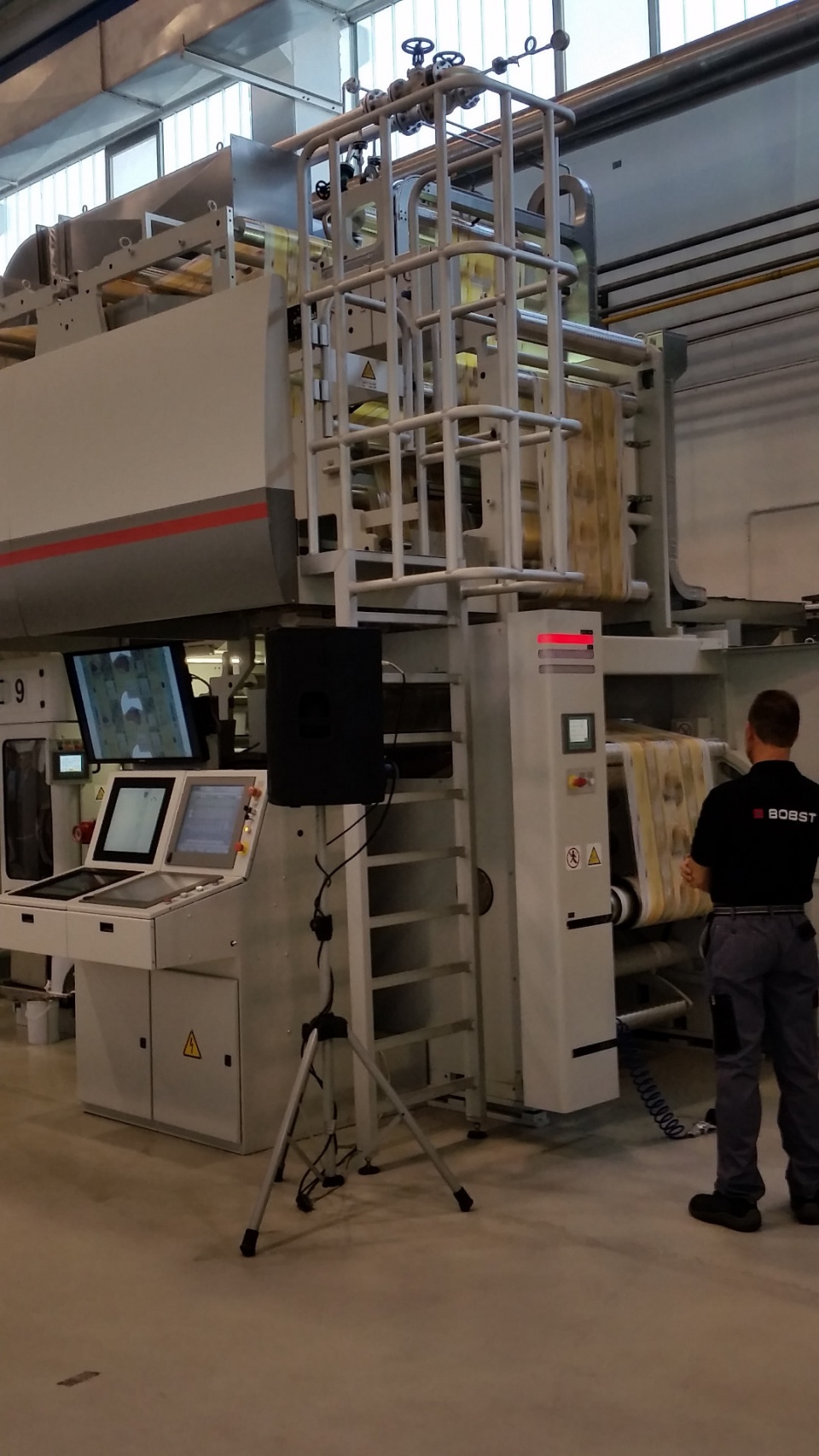 Nel Technology Center di Bobst Italia era disponibile una rotocalco Rotomec MW 80, in luce 850 mm. La macchina, che viene gestita completamente da terra senza ausilio di pensilina, era pronta per stampare un soggetto su un film PET di 12 micron spalmato con AlOx.