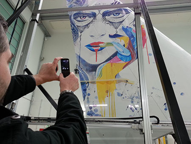 Questo permette di stampare direttamente su oggetti tridimensionali quali le carrozzerie di veicoli, aerei e persino pneumatici o bottiglie di vetro.