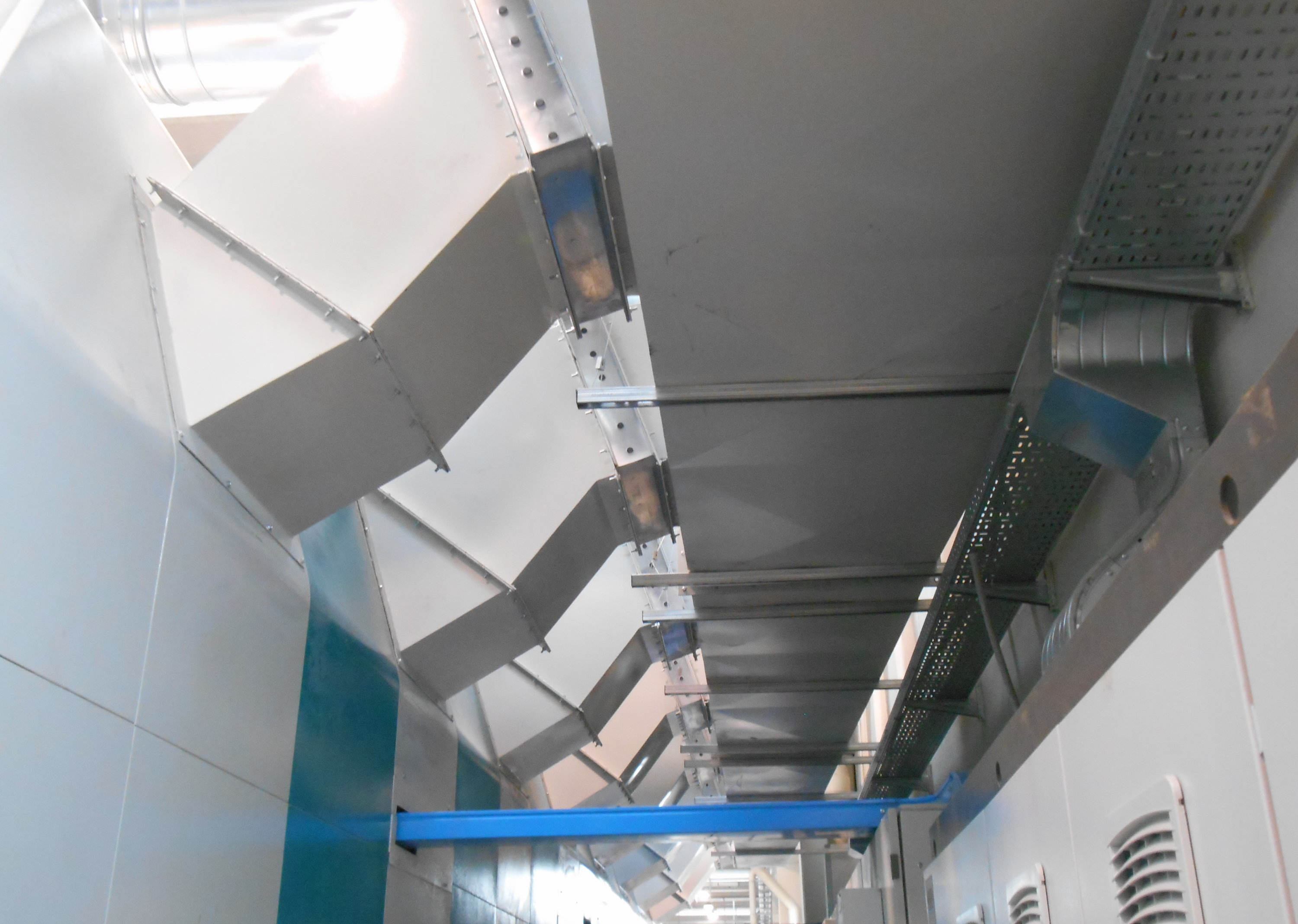 Sempre sullo stesso ondulatore sono poi state realizzate le evacuazioni della ventilazione con tubazioni da Ø1000 mm, per il quale è stato necessario aggirare la difficoltà dei passaggi e lo spazio ridotto di installazione. Un problema risolto studiando accuratamente tutti i passaggi, realizzando dei raccordi con le coperture in vetroresina tali da mantenere la sigillatura contro le intemperie.