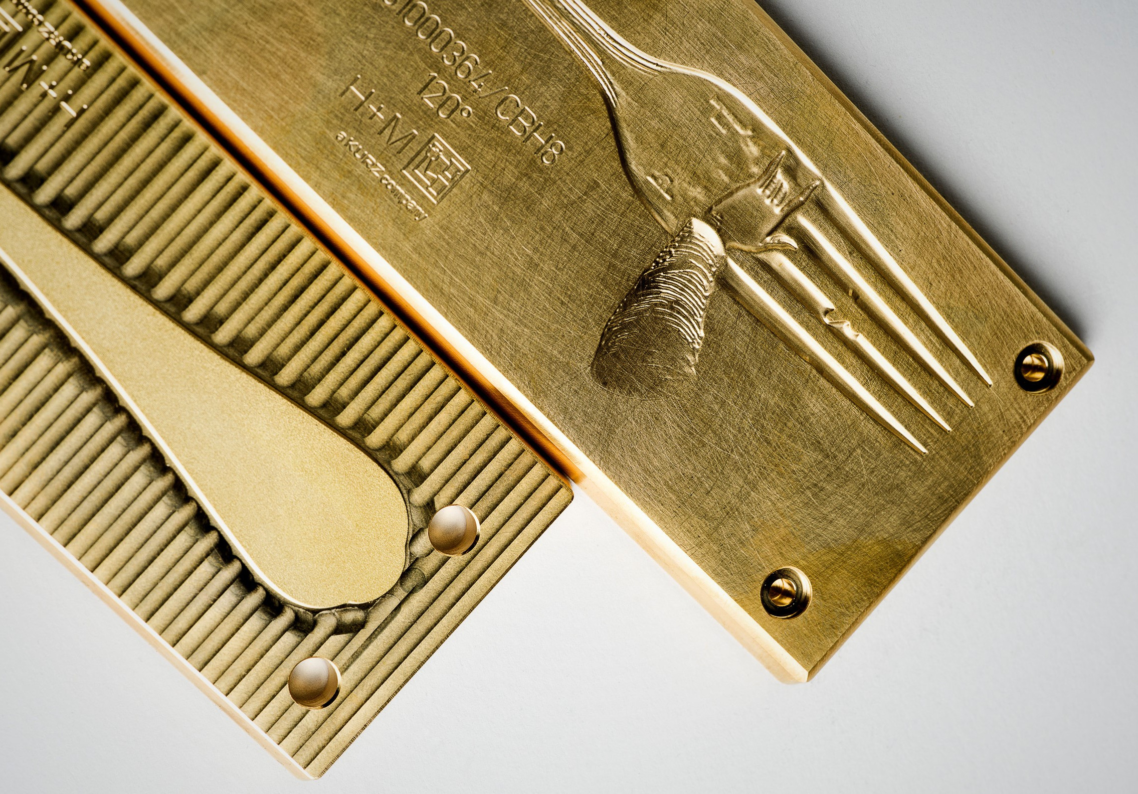 Il design, di ispirazione classica, è il risultato di una nobilitazione a caldo sulla forchetta con in rilievo le mani dell’angelo, che emergono creando una scultura multilivello decisamente elaborata, perfettamente riuscita grazie ai cliché di hinderer + mühlich.