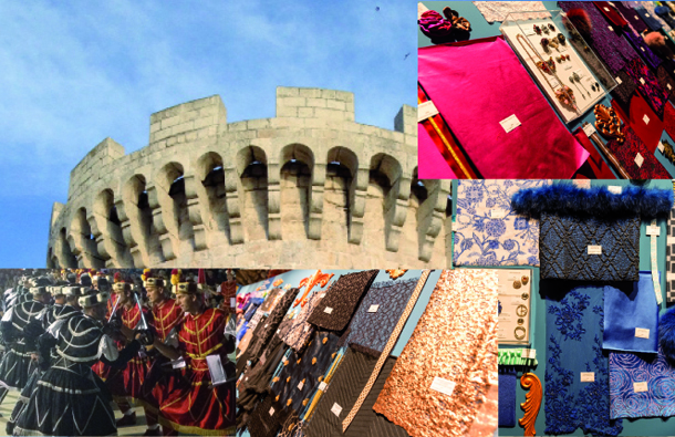 Sangue blu, allure impeccabile, cromatismi saturi per momenti di ufficialità, fantasie contenute ton-sur-ton. Broccati tono su tono con fili lamè e ciniglia, cady stampati lucidi e opachi.