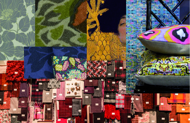 Camiceria a stampe stile W. Morris, raso opaco con stampe a motivi déco, dorature alla Klimt. Jacquard a motivi pixel effetto maglia, velluti devoré con stampe tartan anche per nastri, camiceria a mnotivi déco, stampe con paesaggi dalla campagna inglese.
